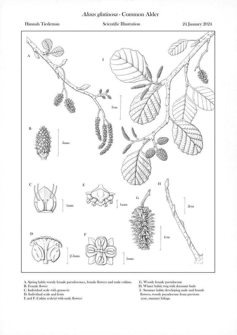A botanical illustrator uses the Ancient Tree Inventory to inspire her scientific illustrations of common alder.
